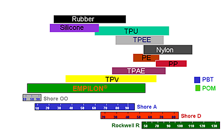 - Wide range of hardness : EMPILON® Hardness is from Shore 00 33 to Shore D 54 (figure 1.)